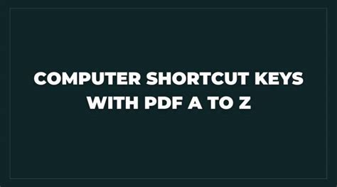 computer shortcut keys list a to z pdf