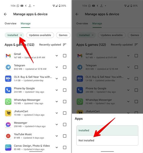 how to check uninstalled apps in play store