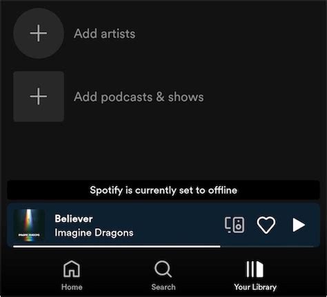 why is my spotify app set to offline